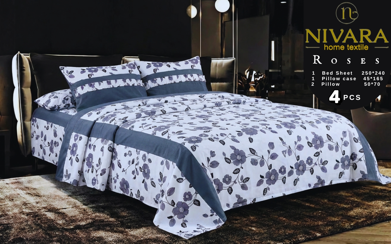 King size 4-piece bed set Bed sheet 2.50*2.40 Longpillow 1.65*0.45 2cushion covers 55*75